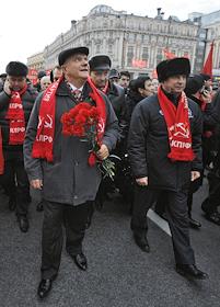 Лидер Коммунистической партии Российи Геннадий Зюганов (второй слева) во время проведения Шествия по…
