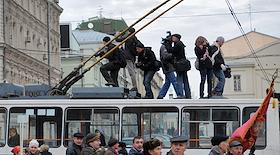 Фотографы во время шествия, посвященного годовщине Октябрьской революции. Организаторы шествия: ЦК…