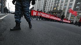 Политика Шествие по улице Тверской к памятнику Карлу Марксу на Театральной площади, где состоится митинг, посвященный годовщине октябрьской революции.