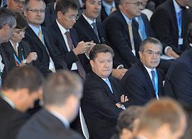 Председатель правления ОАО "Газпром" Алексей Миллер (в центре) и генеральный директор ООО "Газпром…