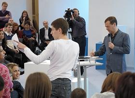 Экономика и бизнес Встреча президента России Дмитрия Медведева со своими сторонниками – представителями сетевых сообществ (блогерами). Выставочный зал "Новый Манеж".