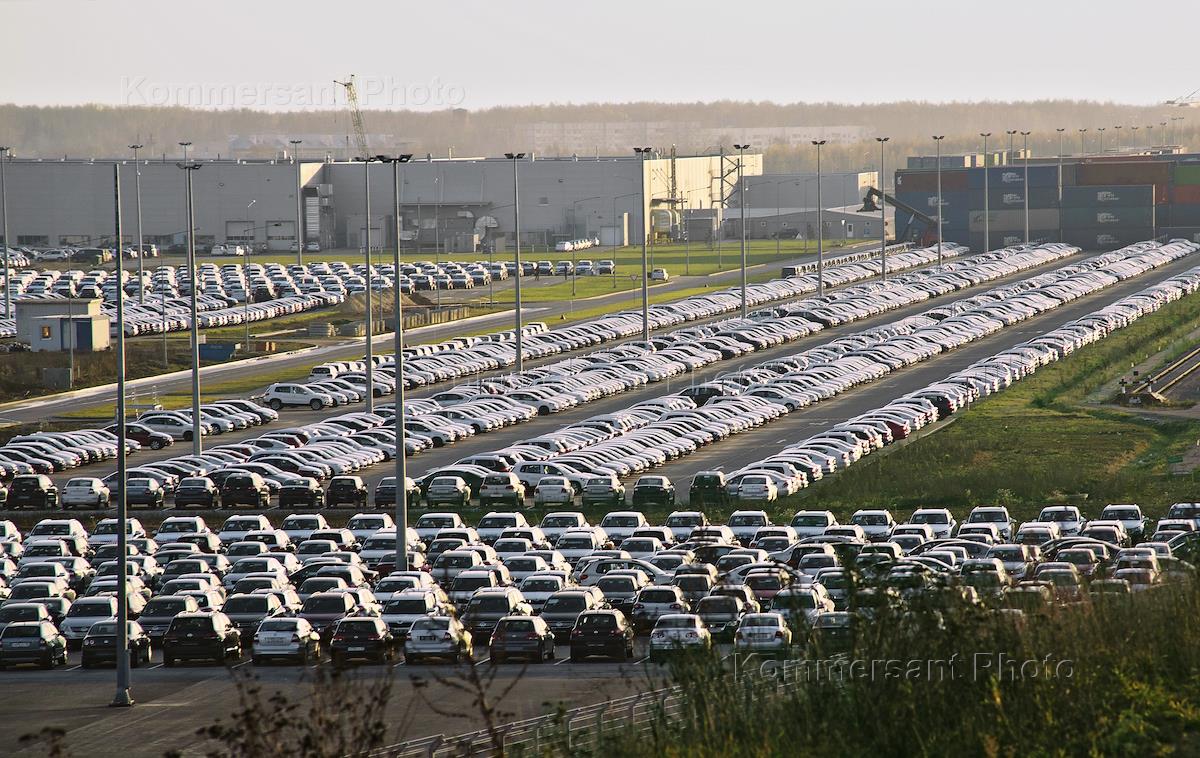 Технопарк "Грабцево" (завод концерна Volkswagen). Стоянка автомобилей.