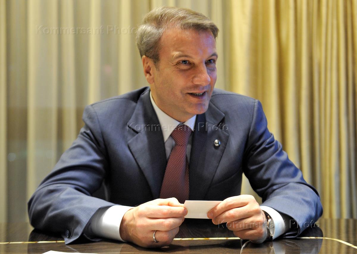 Председатель правления Сбербанка России Герман Греф во время интервью в офисе Сбербанка.