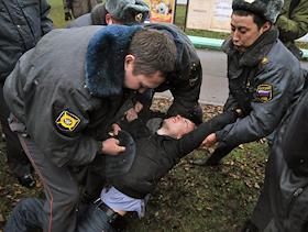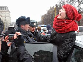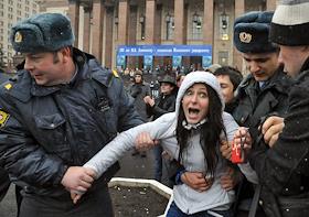 Сотрудники полиции во время задержания участников митинга под лозунгом "МГУ против агитации за Едро…