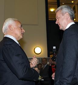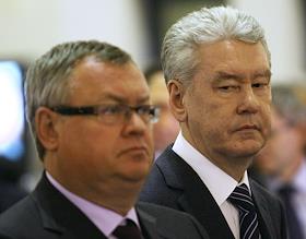 Президент, председатель правления "Внешторгбанка" Андрей Костин (слева) и мэр Москвы Сергей Собянин…