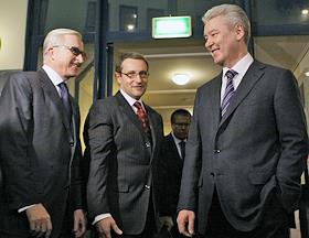Слева направо: председатель правления банка UniСredit Михаил Алексеев, мэр Москвы Сергей Собянин,…
