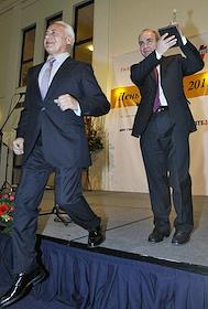 Мэр Москвы Сергей Собянин (справа) во время вручения премии на очередном, Дне Банкира,…
