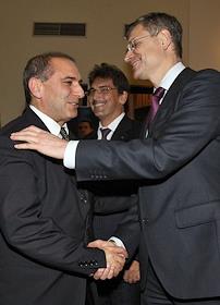 Председатель правления банка UniСredit Михаил Алексеев (слева) и президент Ассоциации Банков…