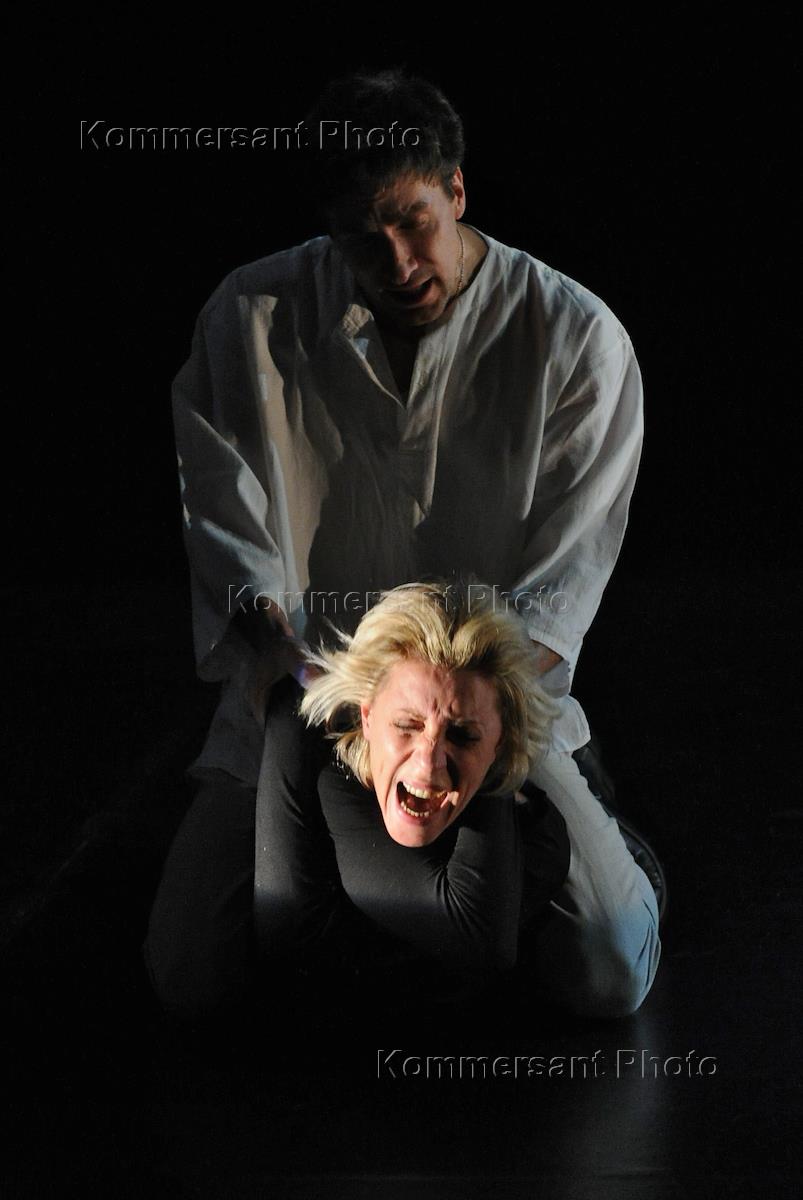 Актеры Юлия Рутберг и Григорий Антипенко на пресс-показе спектакля "Медея" по пьесе Жана Ануя, в…