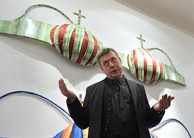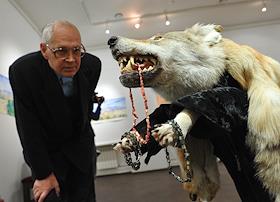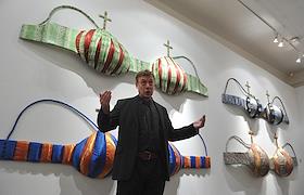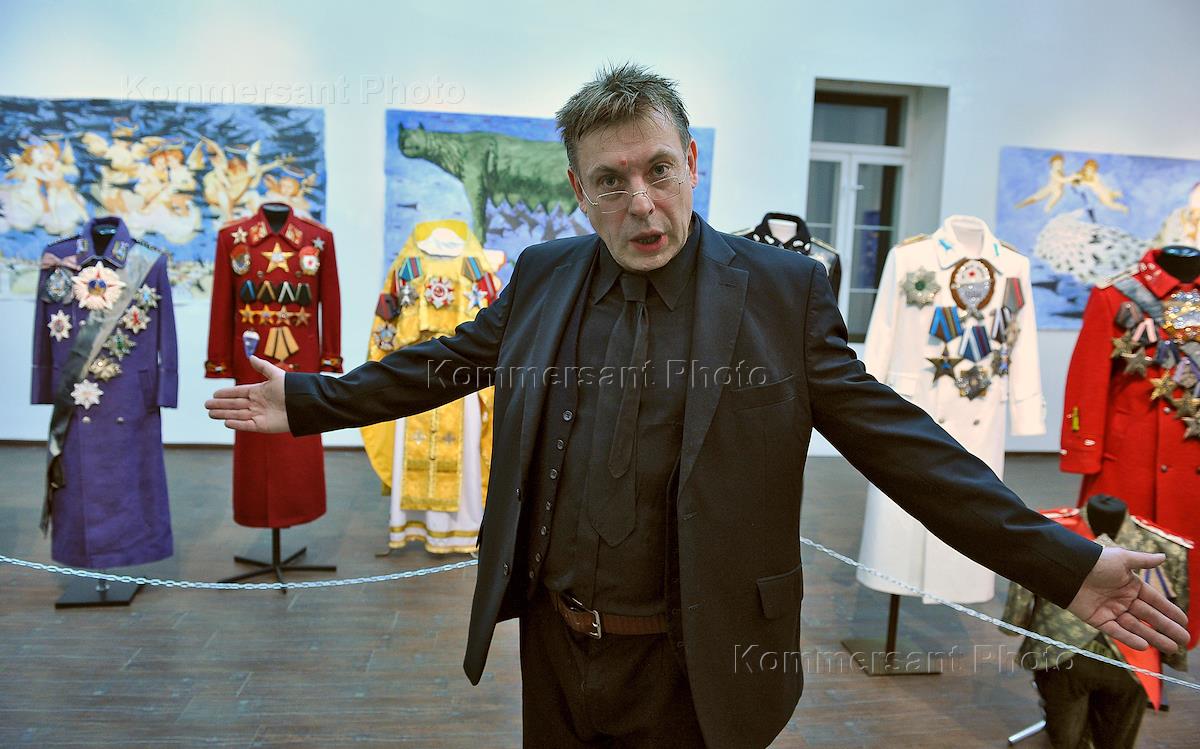 Художник Дмитрий Цветков на церемонии открытия своей выставки "Государство" в Государственном музее…