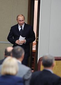 Председатель правительства России Владимир Путин на заседании Госдумы