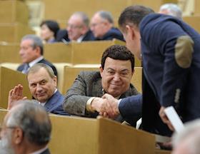 Член комитета Государственной думы России по культуре, певец Николай Расторгуев (слева) и…