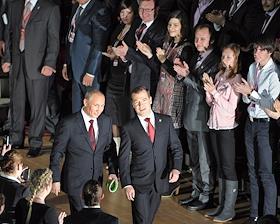 Президент России Дмитрий Медведев (в центре), председатель правительства России Владимир Путин…