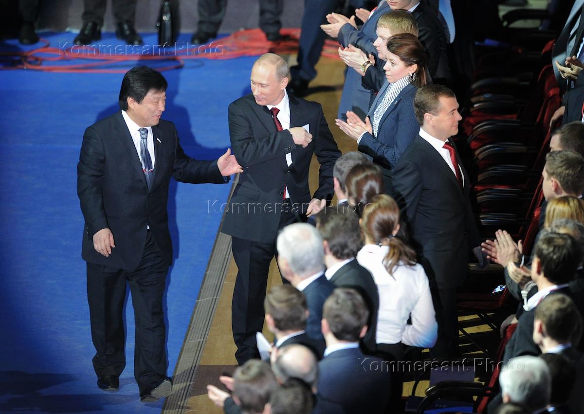Председатель правительства России Владимир Путин (в центре) на XII Съезде Всероссийской политической…