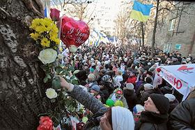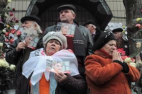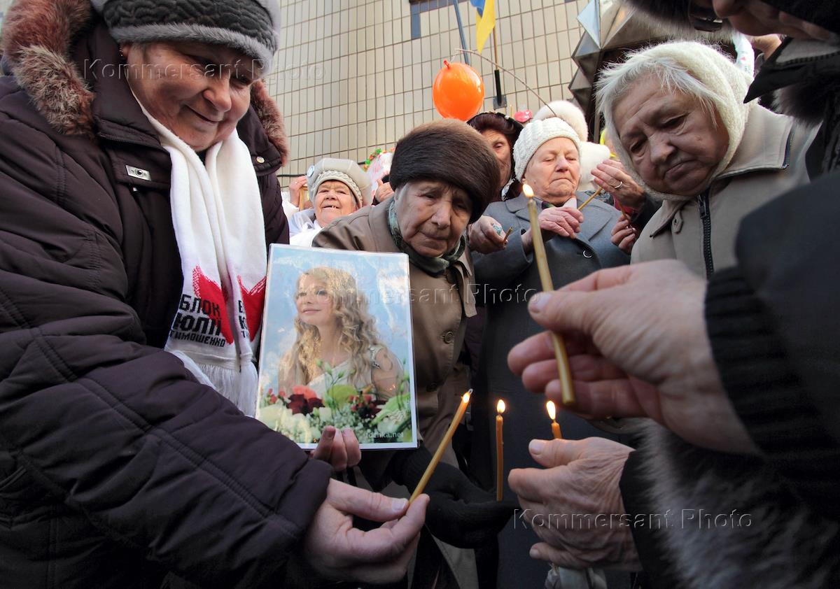 Акция, посвященная дню рождения Юлии Тимошенко "Цветок для Юли" возле Лукьяновского СИЗО, в Киеве.