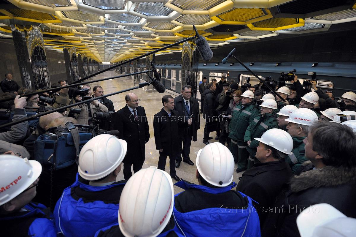 Экономика и бизнес Рабочий визит Президента России Дмитрия Медведева в Свердловскую область. Медведев встретился с представителями малого бизнеса и активом партии "Единая Россия" и присутствовал на открытии новой станции метро "Ботаническая" в Екатеринбурге.