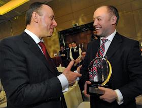 Главный редактор журнала "Деньги" Сергей Яковлев (слева) на церемонии вручения премии…