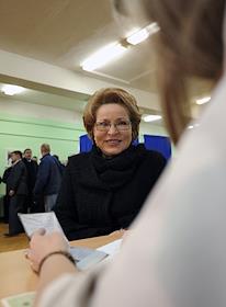 Голосование председателя Совета Федерации РФ Валентины Матвиенко на выборах Депутатов Государственной Думы VI созыва в школе № 87.
