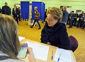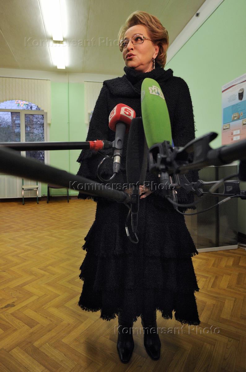 Голосование председателя Совета Федерации РФ Валентины Матвиенко на выборах Депутатов Государственной Думы VI созыва в школе № 87.