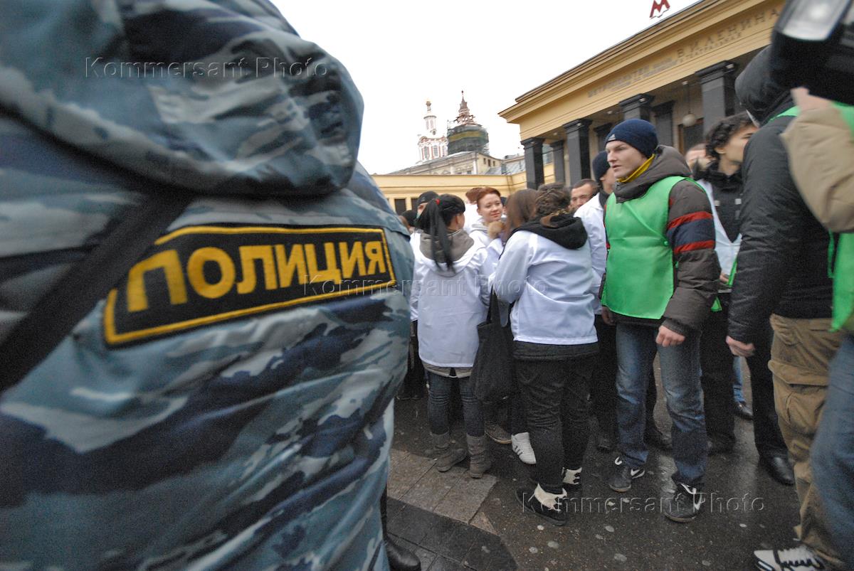 Сотрудники правоохранительных органов во время дежурства на проведении акции партий и движений:…