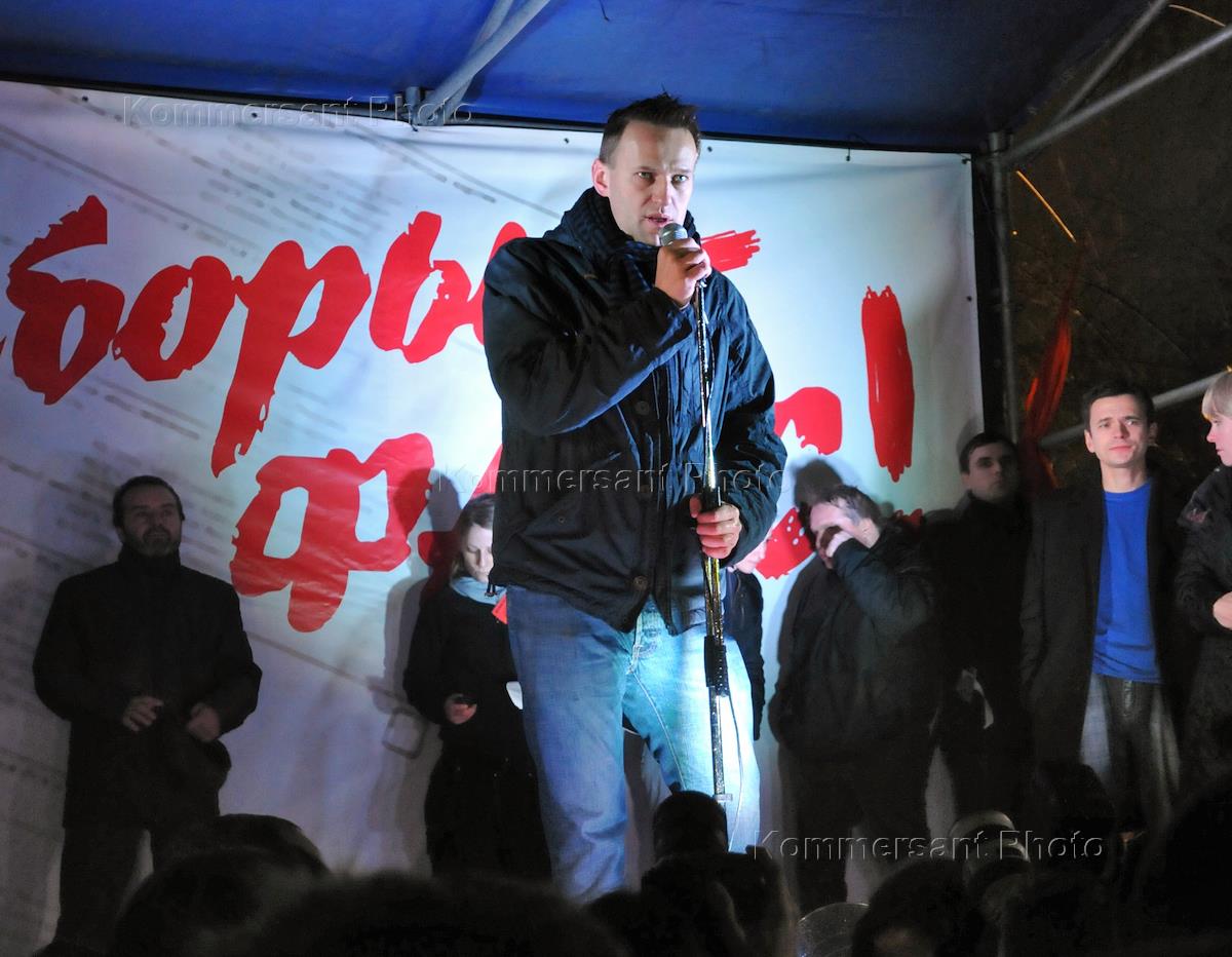 Блогер, основатель проекта "Роспил" Алексей Навальный во время митинга оппозиции против…