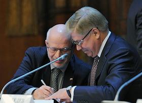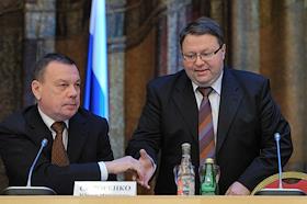 Председатель совета судей России Юрий Сидоренко (слева) и председатель Высшего Арбитражного суда…