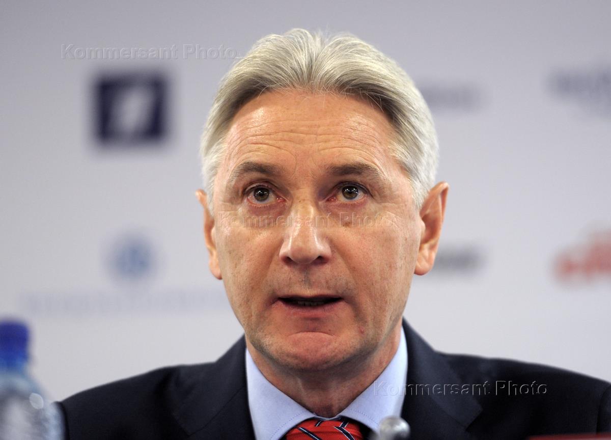 Президент Федерации хоккея России Владислав Третьяк на пресс-конференции национальной сборной…