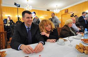 Певица Алла Пугачева (справа) после собрания инициативной группы по выдвижению предпринимателя…