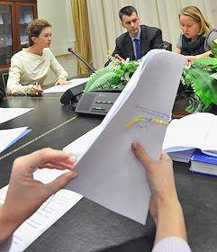 Президент "Онэксим" Михаил Прохоров (в центре) во время подачи документов для регистрации в качестве…