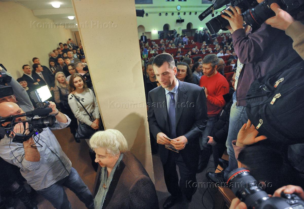 Политика Брифинг Михаила Прохорова в финансковой академии. Подача документов в ЦИК РФ для регистрации в качестве кандидата на должность Президента РФ в ЦИК РФ.