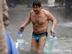 Жанровая фотография. Крещенские купания в роднике Гремучка.