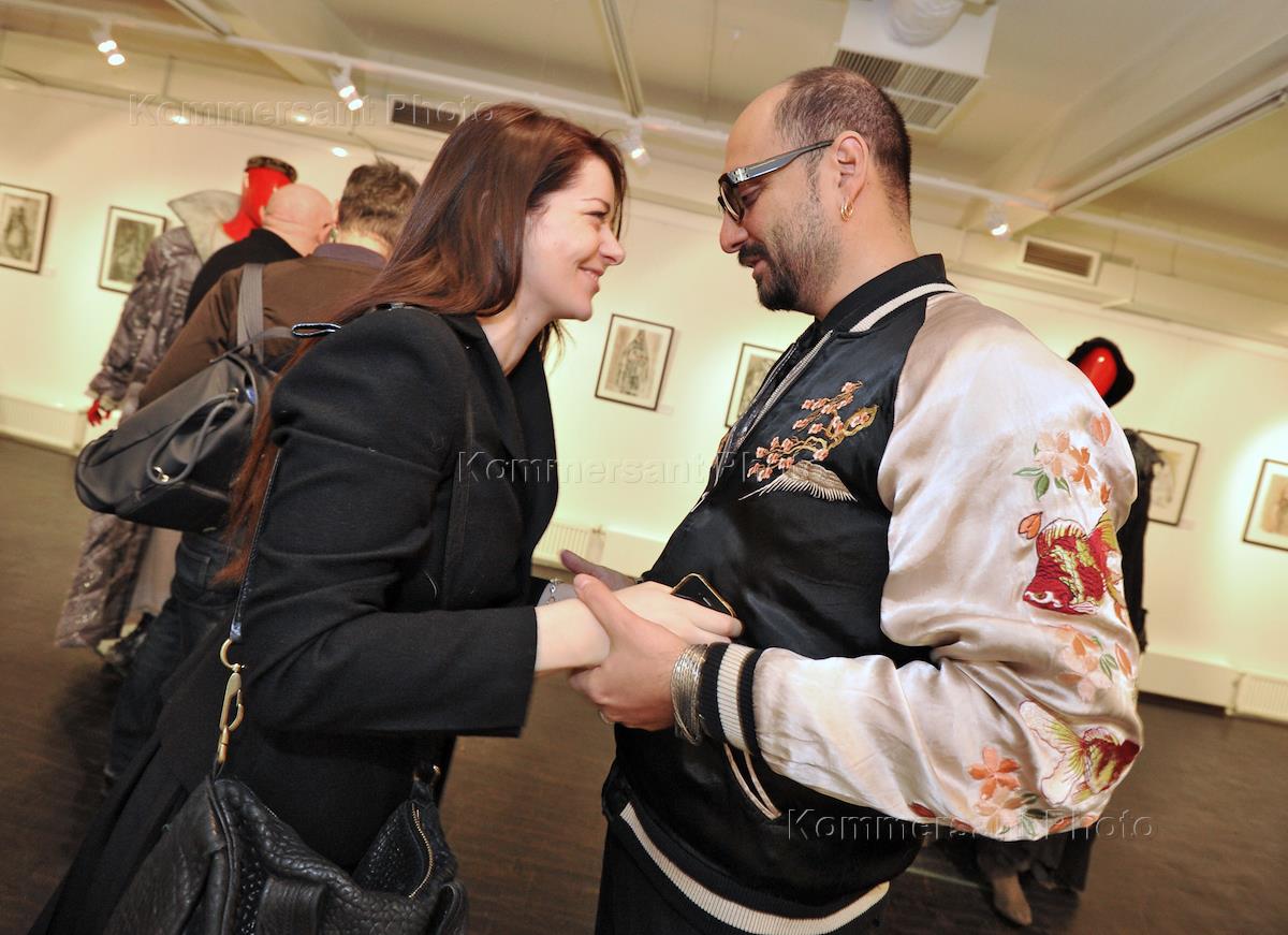 Художник Павел Каплевич (справа) и дизайнер Ольга Солдатова (слева) на выставке Павла Каплевича…