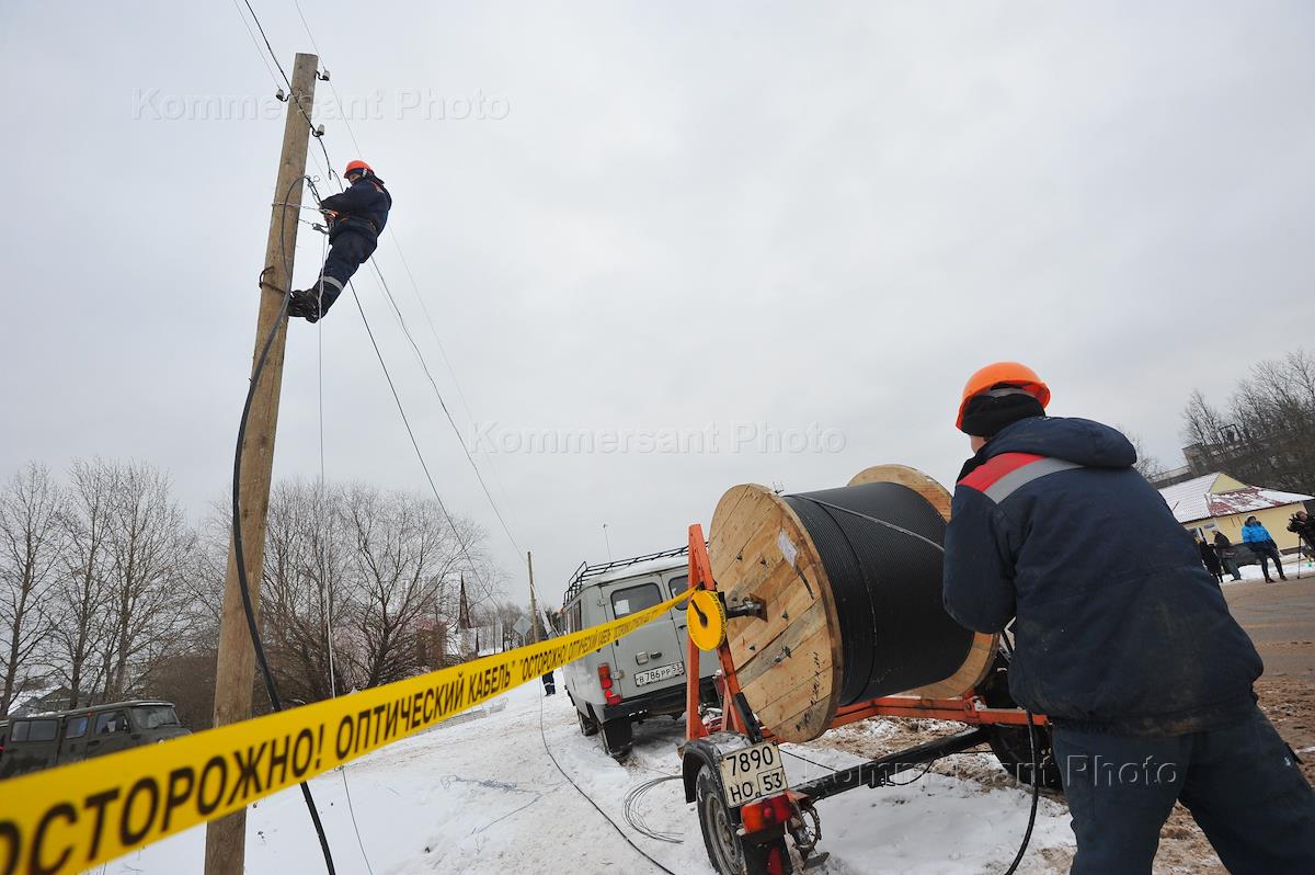 Жанровая фотография. Проводка оптического кабеля. Связисты прокладывают волоконно-оптический кабель…