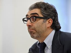 Президент Группы компаний РОСГОССТРАХ Данил Хачатуров во время пресс-брифинга в конференц-зале…