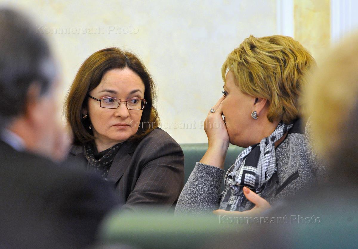 Министр экономического развития России Эльвира Набиуллина (слева), председатель Совета Федерации…