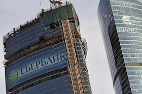 Реклама Сбербанка России на одной из башен Московского международного делового центра "Москва-сити".