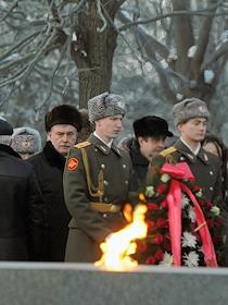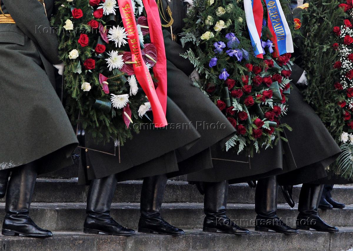 Церемония возложения венков к скульптуре "Мать-Родина" на Пискаревском мемориальном кладбище.