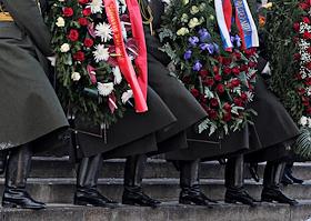 Председатель правительства России Владимир Путин (справа) во время церемонии возложение венков к…
