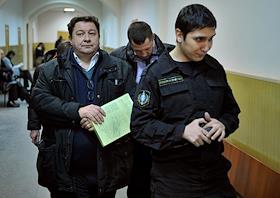 Совладелец информагентства "Русьинформсервис" Алексей Трушин (справа), обвиняемый в мошеничестве,…