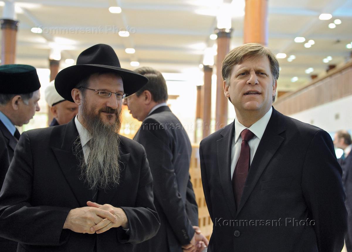 Главный раввин федерации еврейских общин России Берл Лазар (слева) и посол США в России Майкл Макфол…