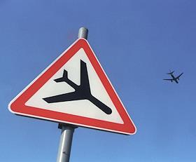 Дорожный знак "Внимание! Самолет!" на дороге к аэропорту "Шереметьево 1".