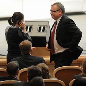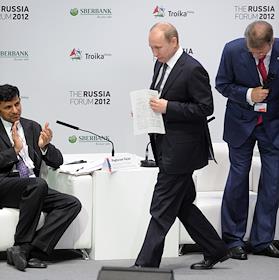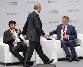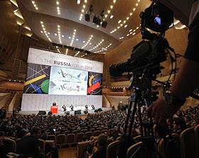 Председатель Правительства РФ Владимир Путин на Форуме Россия 2012, Тройка Диалог в Московском международном Доме музыки.