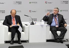 Инвестиционный форум "Россия 2012". Слева направо: председатель Milken Institute Майкл Милкен,…