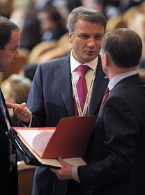 Президент, председатель правления Сбербанка России Герман Греф (слева) и председатель правления ОАО…