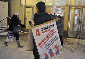 Экономика и бизнес Серия одиночных пикетов у станций Московского метро, с целью призвать граждан выйти на шествие "За честные выборы" 4 февраля. Автомобильные пробки в Москве.