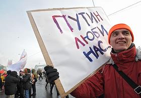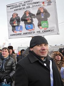 Фотография блогера Алексея Навального на баннере во время акции "За честные выборы". Акция прошла в…