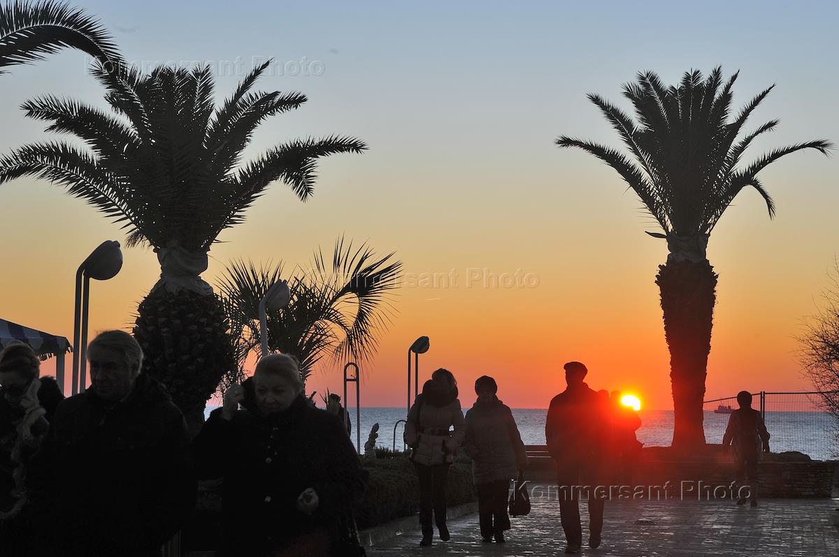 Виды Сочи. Набережная Черного моря на закате солнца.