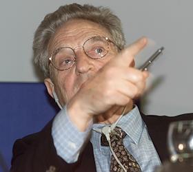 Экономист, меценат Джордж Сорос на презентации своей книги.