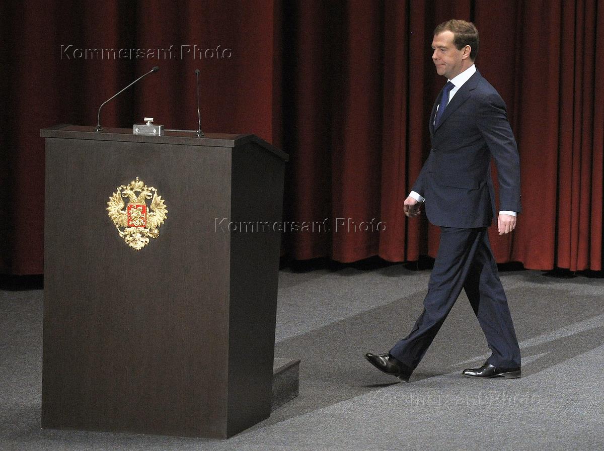 Президент РФ Дмитрий Медведев на расширенной коллегии министерства внутренних дел РФ.