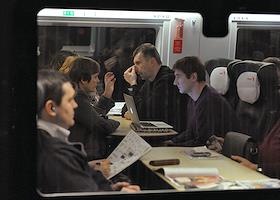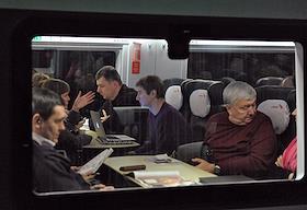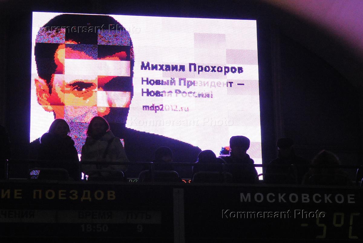 Кандидат на должность президента России Михаил Прохоров на Ленинградском вокзале перед отъездом в…